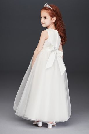 Beaded Applique Flower Girl Dress With Tulle Skirt David S Bridal